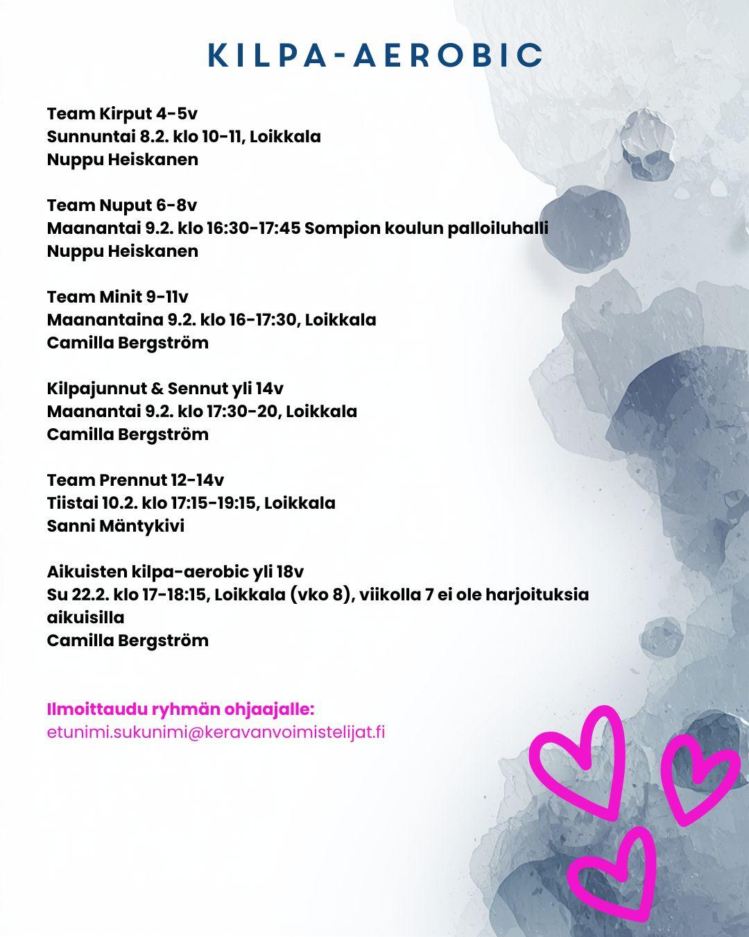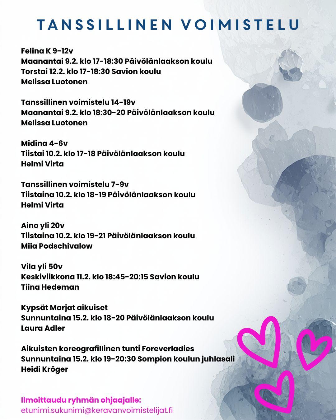 Kurkkaa kuvista mukana olevien ryhmien aikataulut ja kutsu ystäväsi mukaan tutustumaan! Tutustuminen on maksutonta!💞